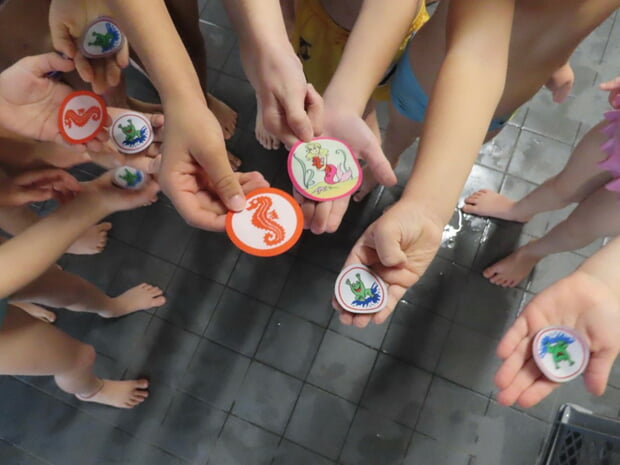 Zum Auftakt der Veranstaltung erhielten die Kinder des gerade abgeschlossenen Schwimmkurses feierlich ihre Schwimmabzeichen.