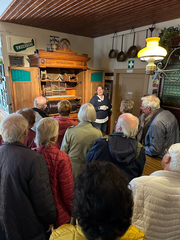 Auf die Ausschreibung der Stadt hin machten wir uns am vergangenen Mittwoch auf nach Bruchsal ins Schloss. Bürgermeister Albrecht Dautel begrüßte die angemeldeten Teilnehmer im Bus. Busfahrer Selim fuhr mit uns prima an allen Baustellen vorbei. So bekamen wir nach der Ankunft bei einer Führung im Deutschen Musikautomatenmuseum einen prima Eindruck. Anschließend warteten im Schlosscafé Kaffee und frisch gebackener Kuchen auf uns. Bei strahlendem Sonnenschein gab es noch einen kleinen Spaziergang durch den Schlosspark. Im Bus auf der Heimfahrt kredenzte uns Kurt Sartorius flüssige Schätze aus dem Schnapsmuseum gepaart mit Witzen und Anekdoten. Ein wunderschöner und kurzweiliger Herbstnachmittag – da waren sich alle einig.