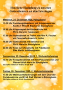 Die Gottesdienste an den Weihnachtsfeiertagen und Jahreswechsel finden sie auf der beigefügten Anzeige