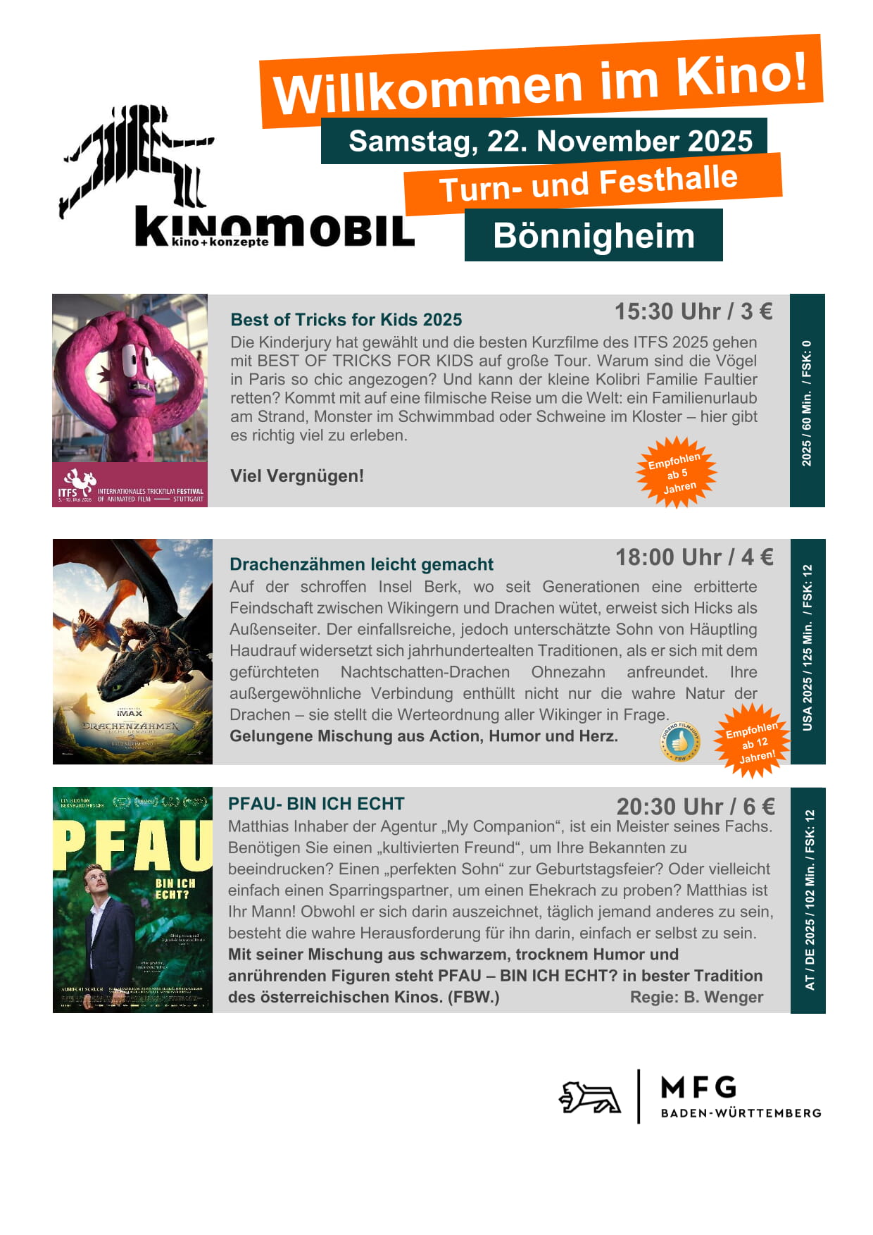 Am Samstag, 22. November zeigen wir folgende Filme: