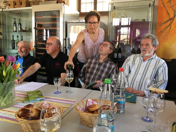 Nach sehr angeregter Fachdiskussion über verschiedene Themen des Weinbaus endete der Besuch im Hause Kölle mit dem Dank an den Gastgeber und der Erkenntnis, dass der Weißburgunder noch immer für viele Konsumenten „die große Unbekannte“ sei, die „schön schlank, filigran, spritzig und frisch“ daherkomme und mehr als einen lauen Sommerabend verdient habe.