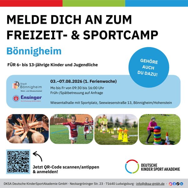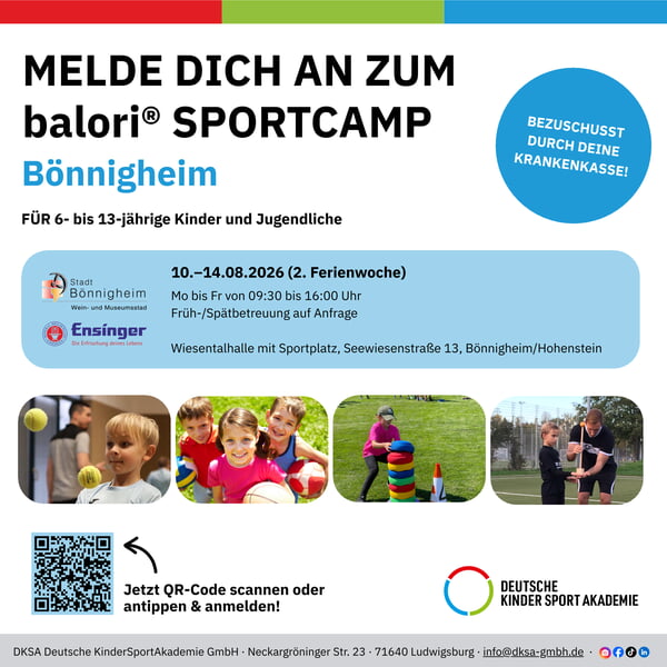 Auch im Jahr 2026 wird uns die Sportakademie Ludwigsburg mit den zwei Sportcamps in den ersten zwei Sommerferienwochen in Bönnigheim-Hohenstein ein tolles Programm anbieten.
