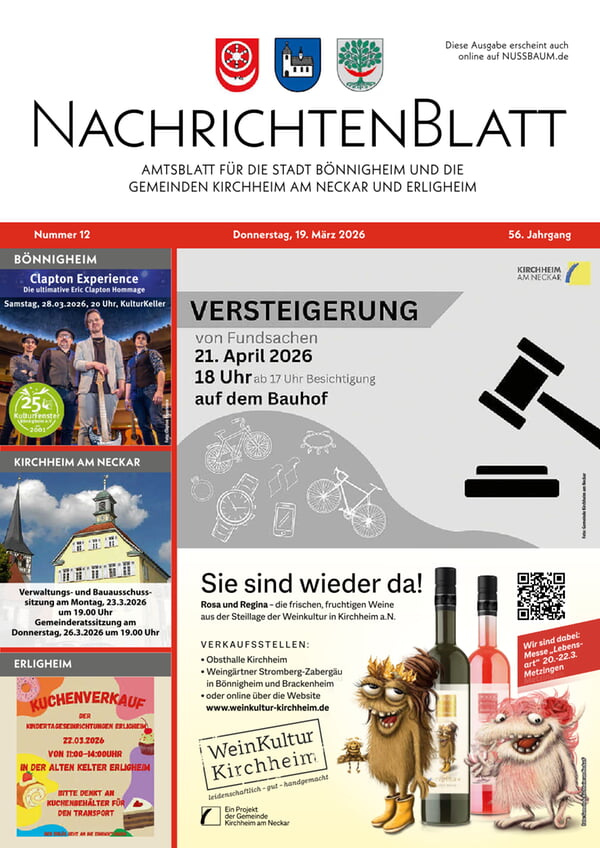 der Stadt Bönnigheim und der Gemeinden Kirchheim am Neckar und Erligheim